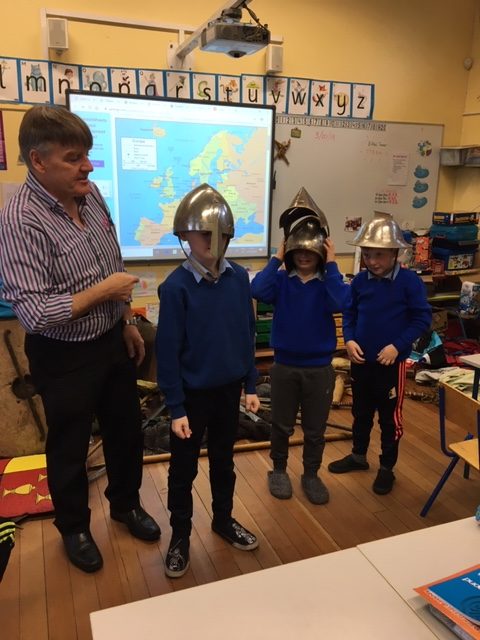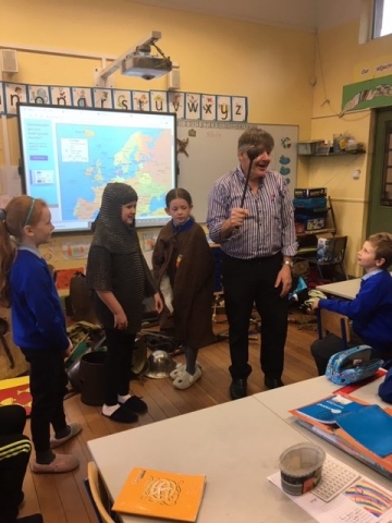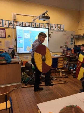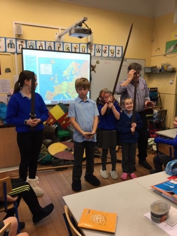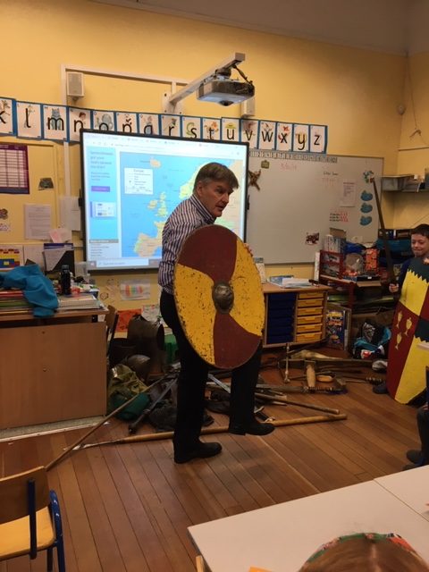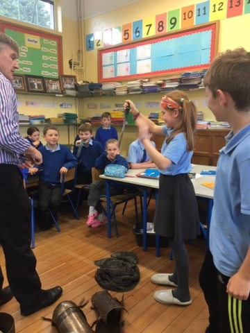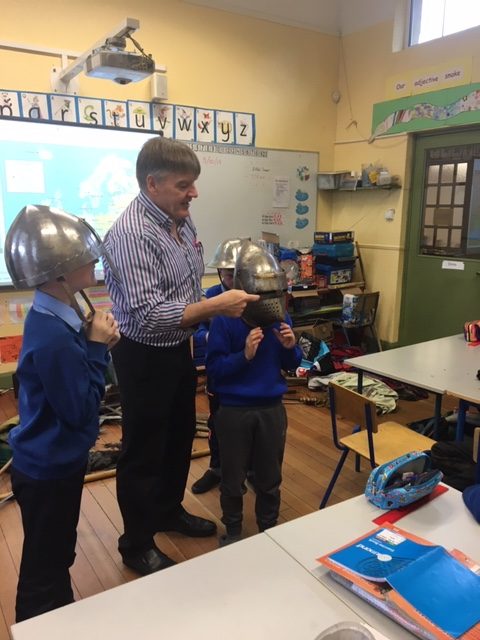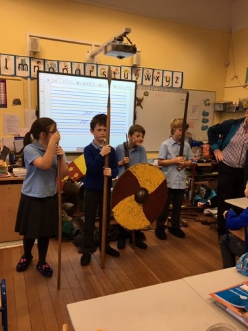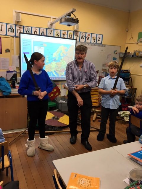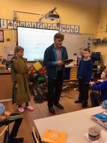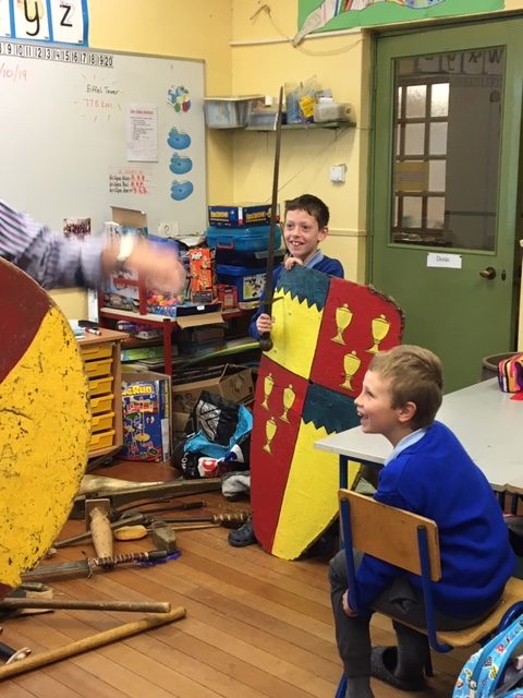 Heritage expert, Michael Moylan, came to talk to us and educate us on The Vikings, in a fun and hands-on way. We really enjoyed trying on the replica armour and clothes and trying out the replica (and safe!) weapons of The Vikings era.