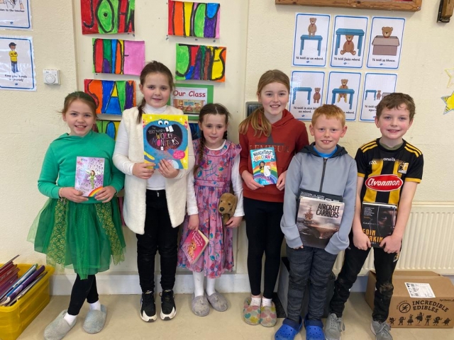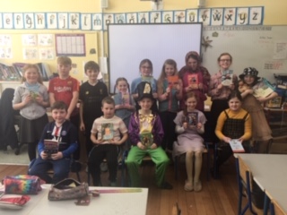 The children in 2nd and 3rd class dressed up as their favourite literary characters for World Book Day. They also brought in a copy of their favourite book or book that their character is in. Have a look at the photo below to see the varied and imaginative costumes that they dressed up in on the day!