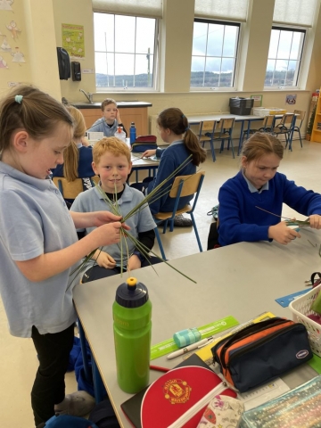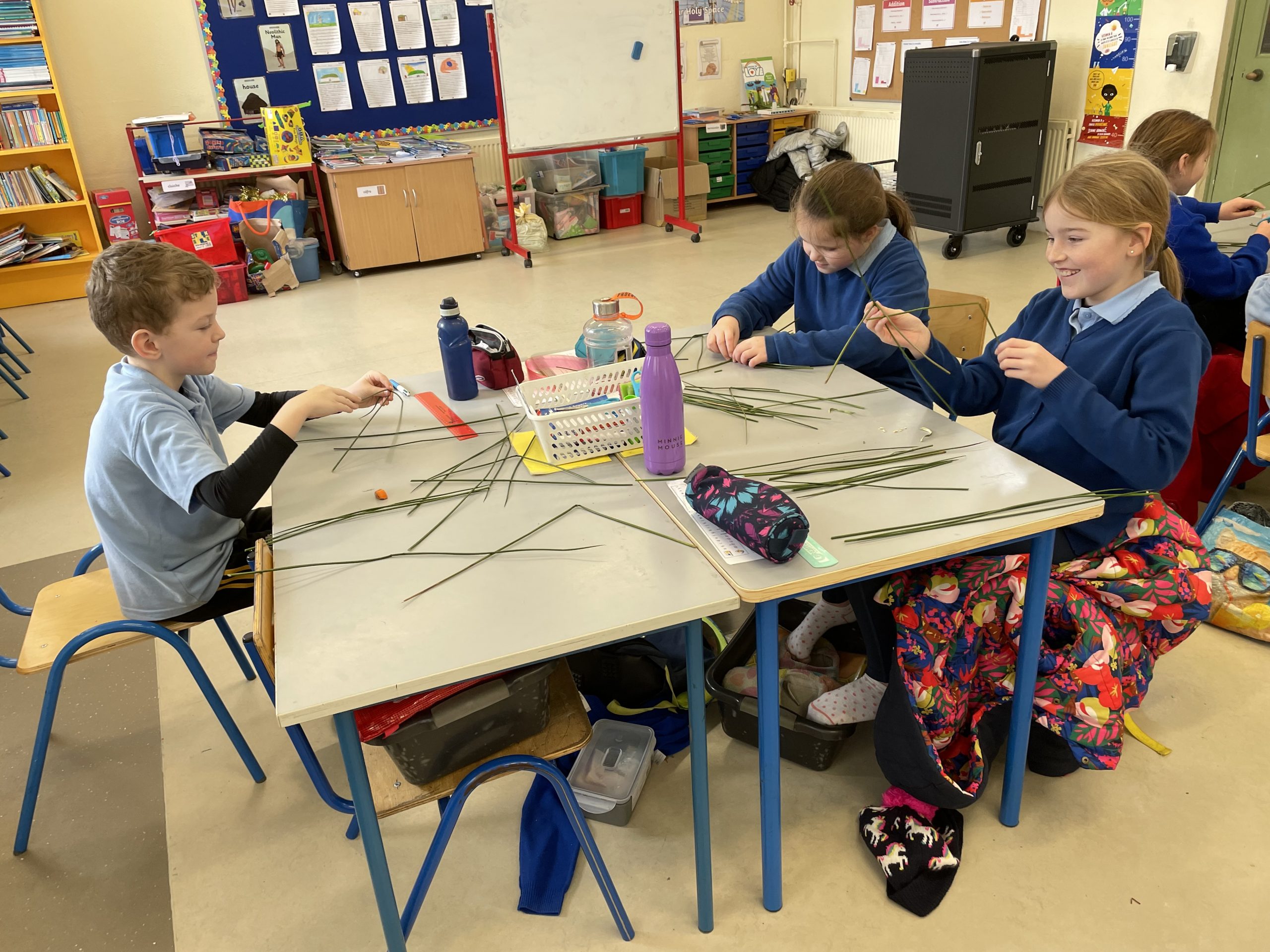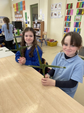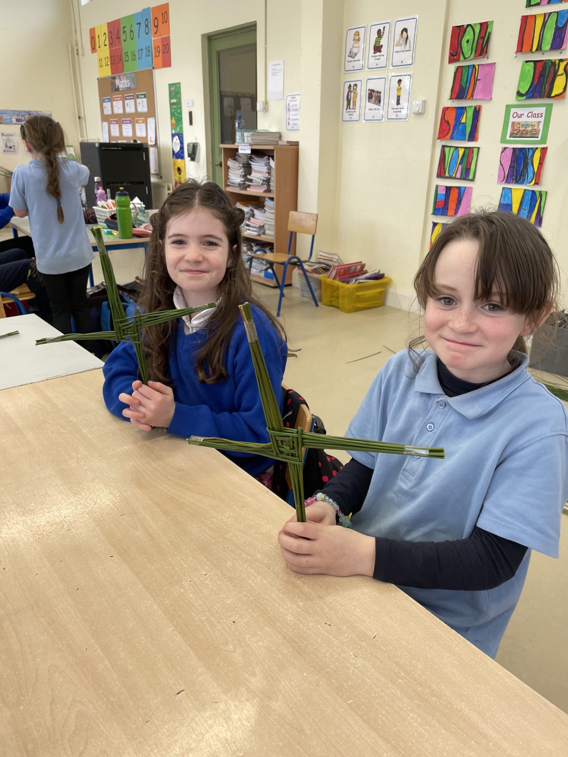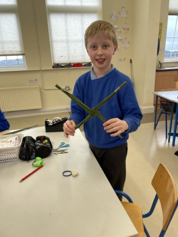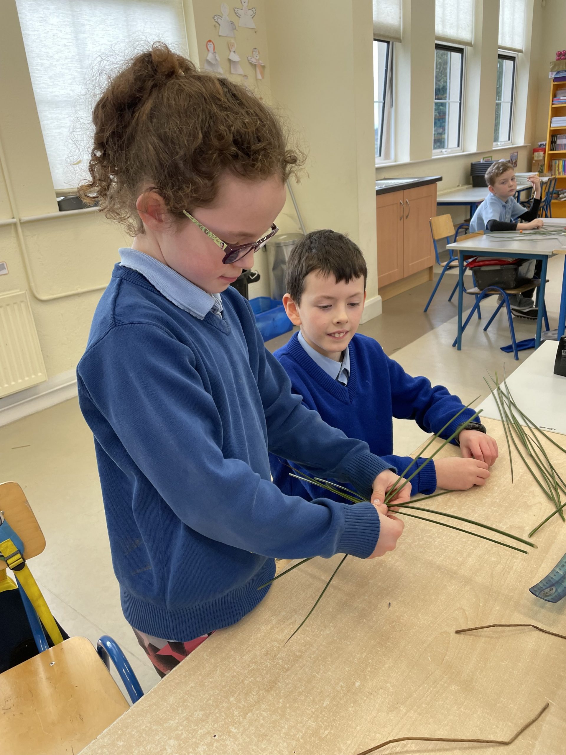We celebrated St. Brigid’s Day by making St. Brigid’s crosses. These are made using rushes which the children collected.