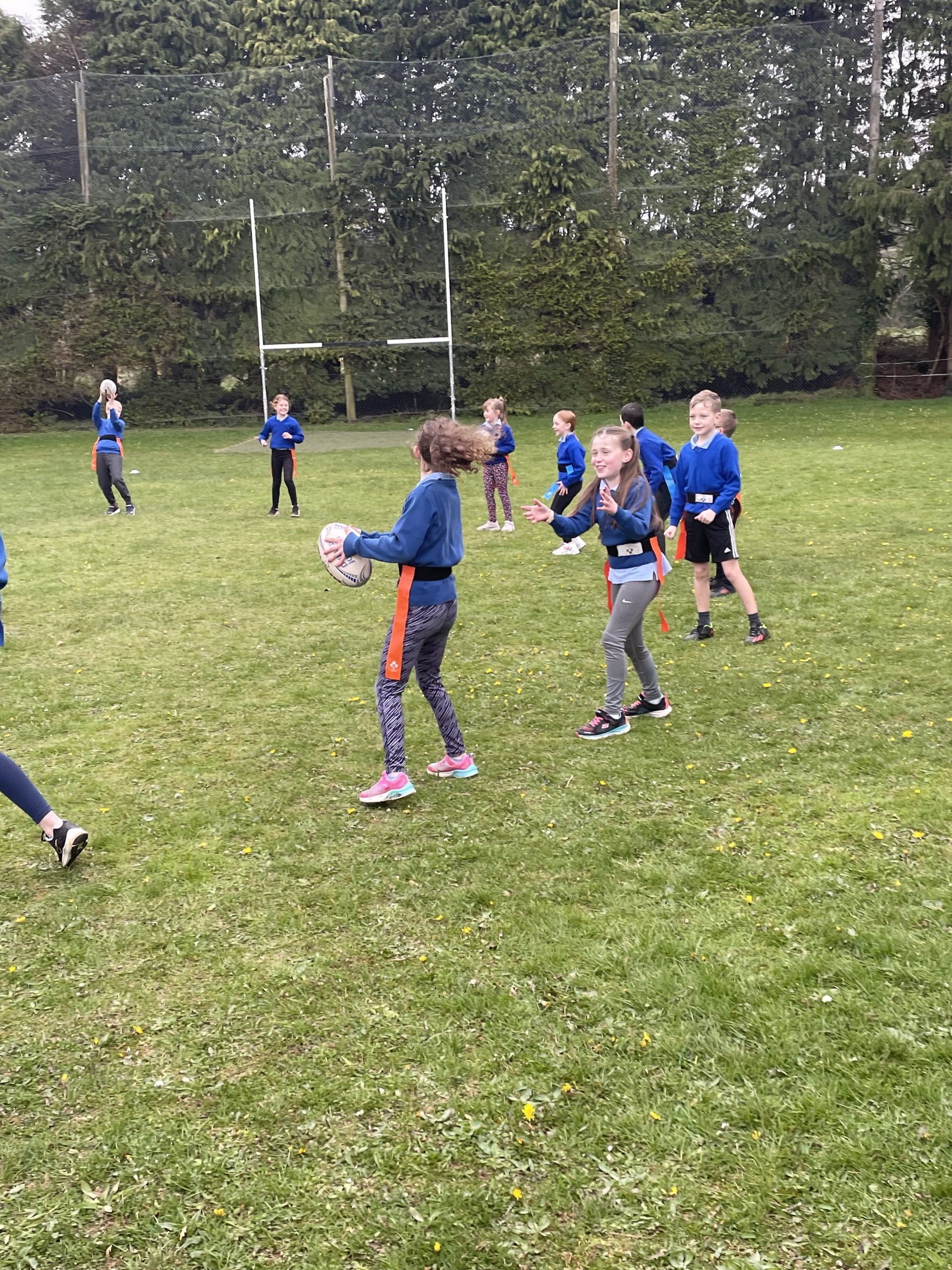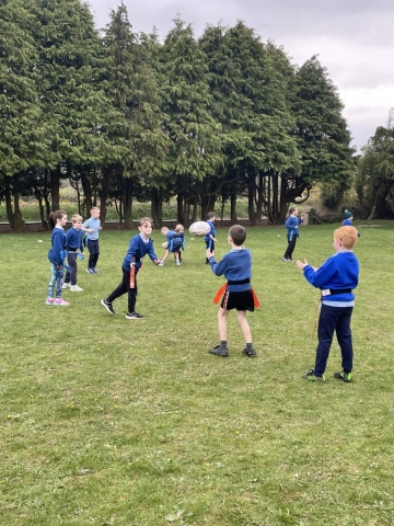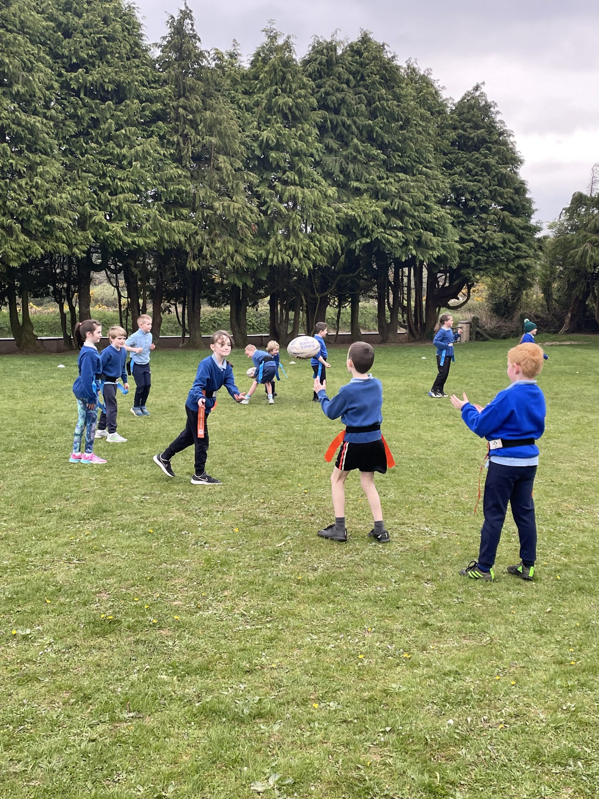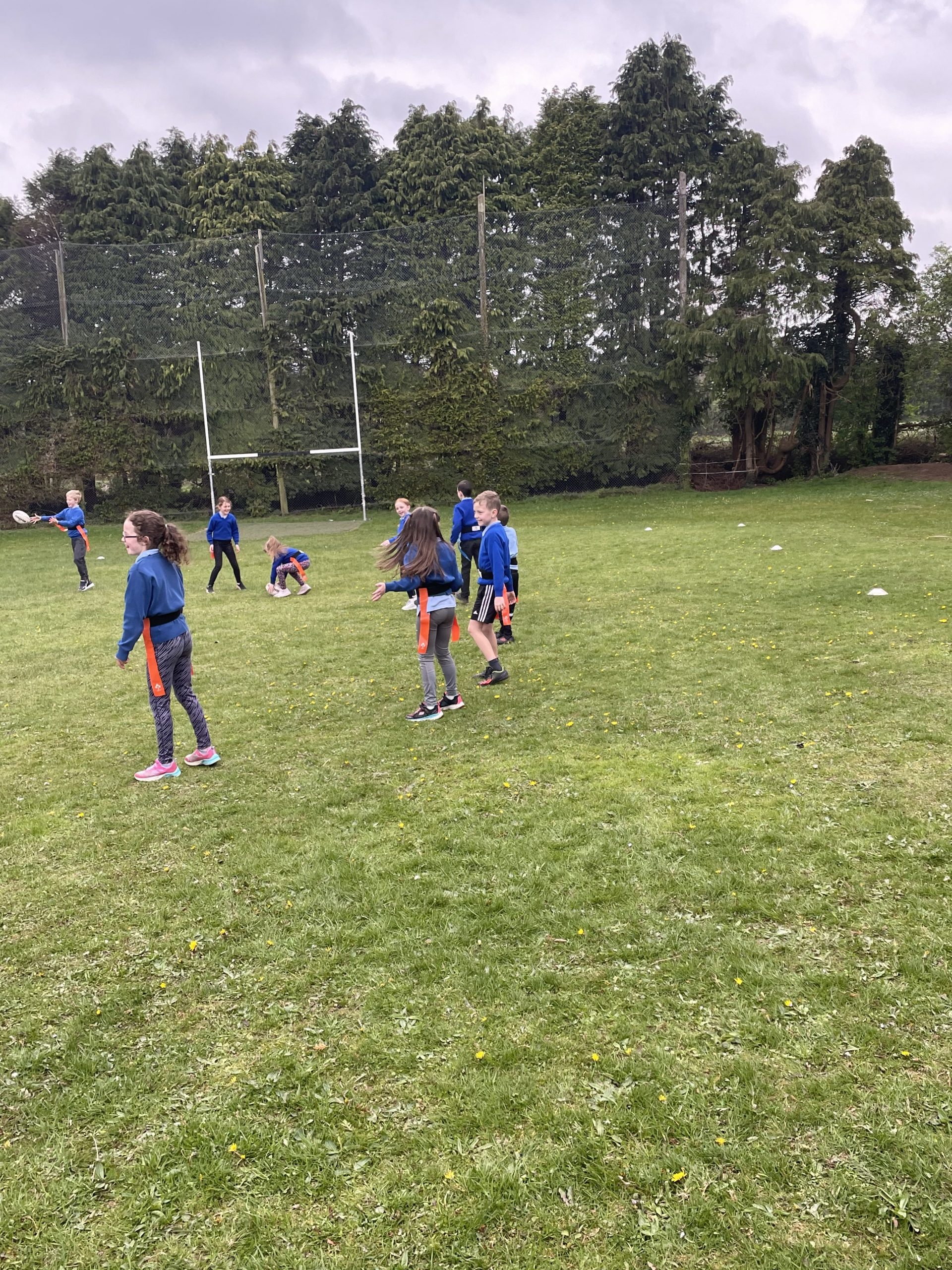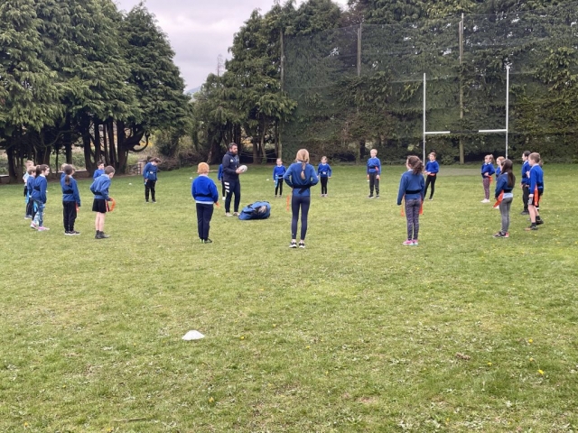We have started tag rugby, courtesy of New Ross Rugby Club, on Fridays. 1st class join us for our coaching sessions and we are really enjoying it!