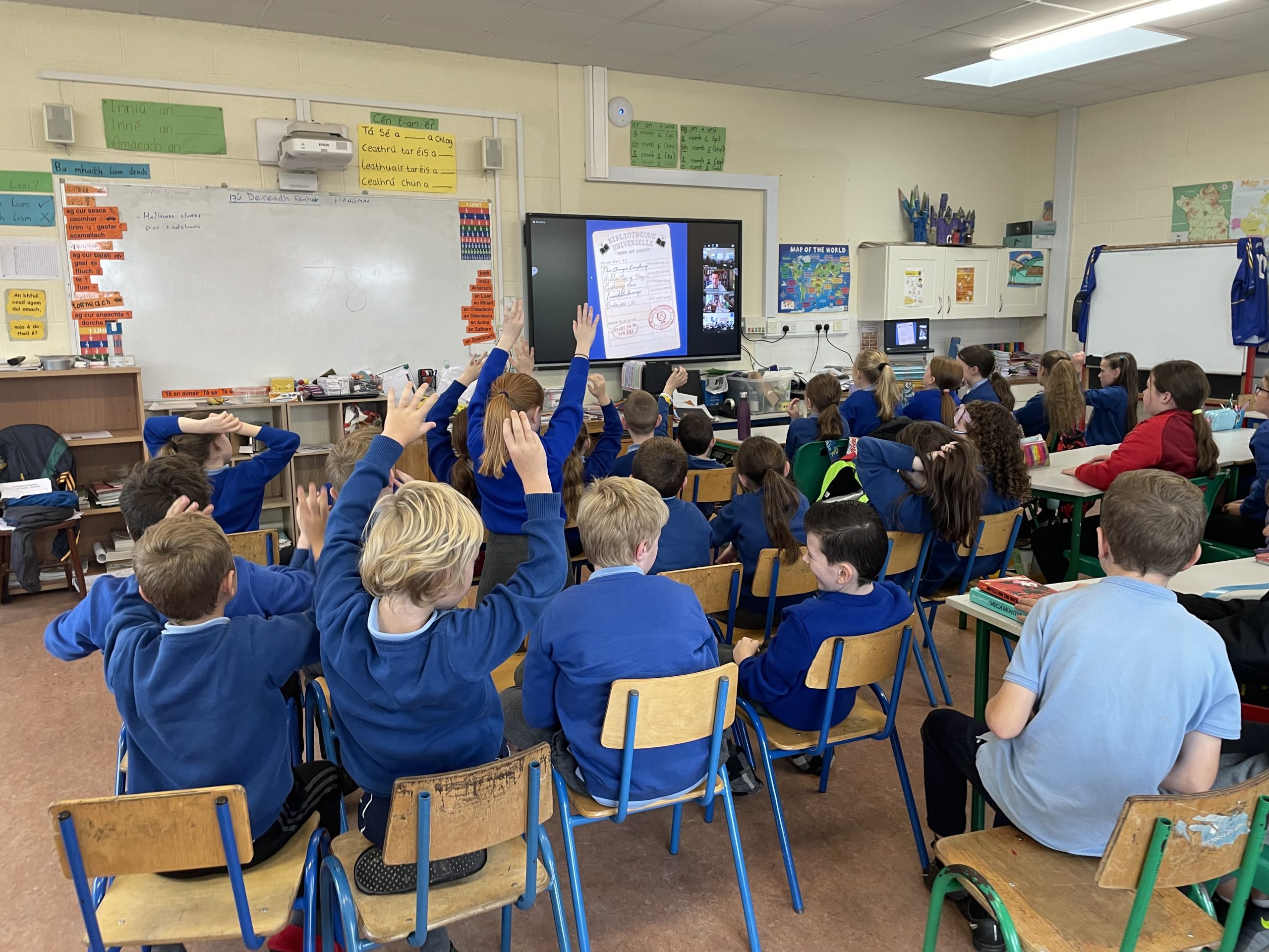 2nd and 3rd class, along with 4th, 5th and 6th class, took part in an interactive Zoom call to celebrate Bookville. The author, Christopher Edge, told us about his own experience of Escape Rooms and then set us a challenge to solve puzzles in order to escape from Escape Rooms that he had created. This activity was enjoyed by all.